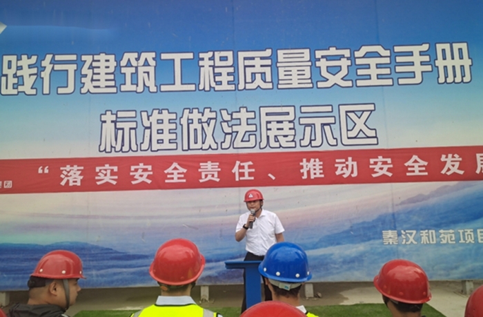 秦漢和苑項(xiàng)目經(jīng)理申宏亮對項(xiàng)目安全管理作了經(jīng)驗(yàn)交流并對安全生產(chǎn)做出了鄭重承諾。他提到,現(xiàn)場安全生產(chǎn)不光要明確目標(biāo)、突出重點(diǎn),更要樹立大局意識(shí),認(rèn)清形勢、狠抓落實(shí)。只有把安全生產(chǎn)工作做細(xì)做好、落到實(shí)處,才能創(chuàng)造一個(gè)安全、有序、和諧的生產(chǎn)環(huán)境。